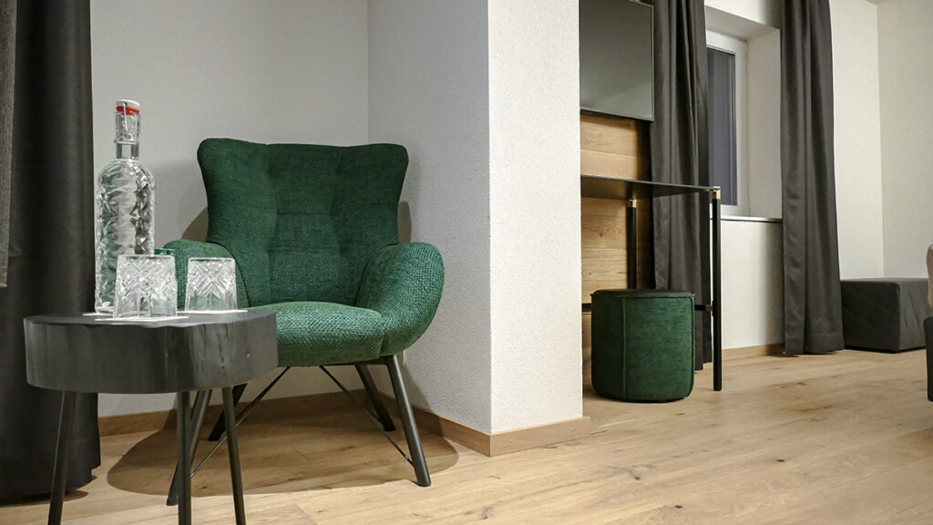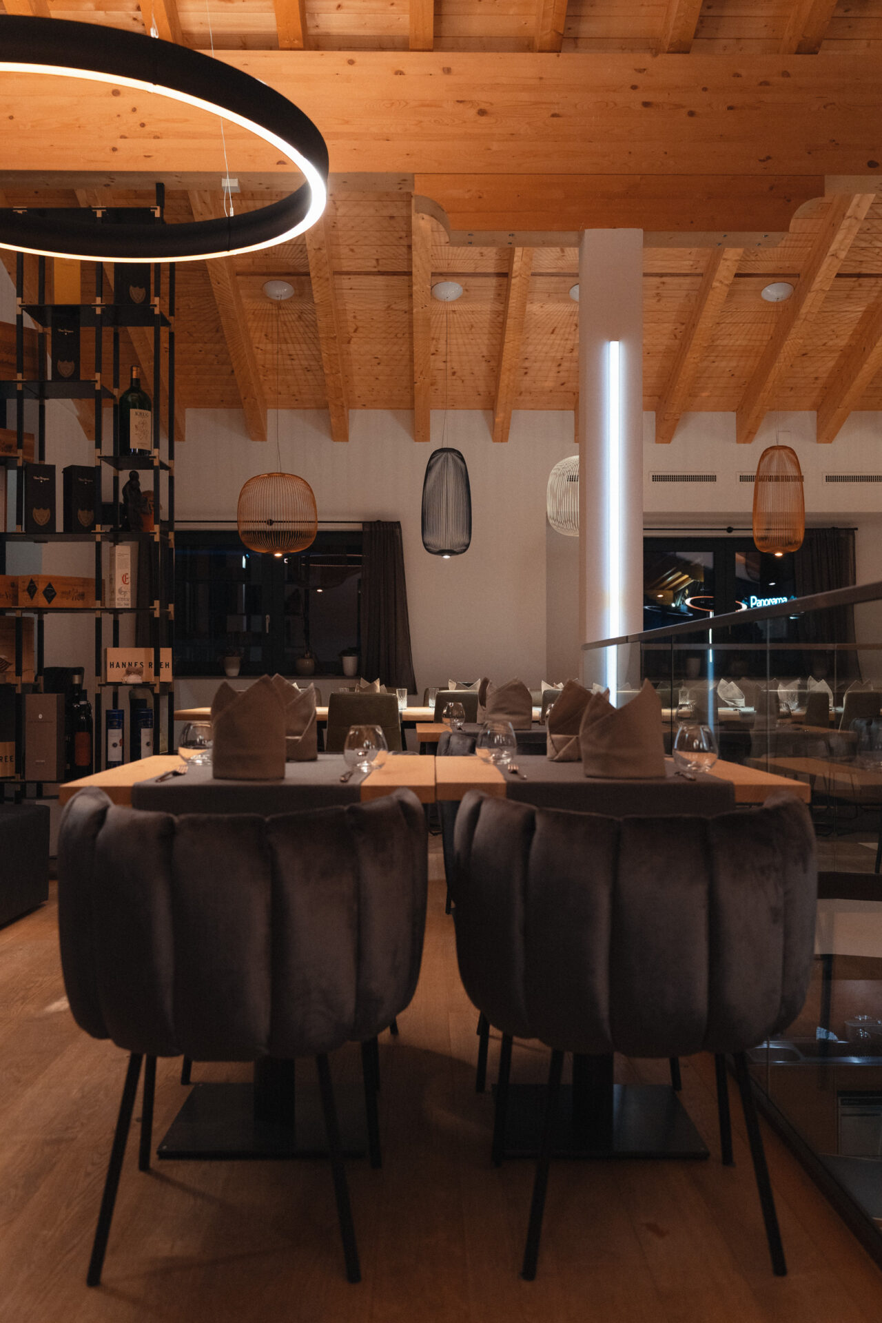 Panoramic windows invite the mountain scenery inside, while warm lighting, and rich materials ensure a feeling of cozy sophistication after a day on the slopes. Every detail – from handcrafted furniture to curated artwork, reflects the region’s character and craftsmanship, reinterpreted with a modern twist.